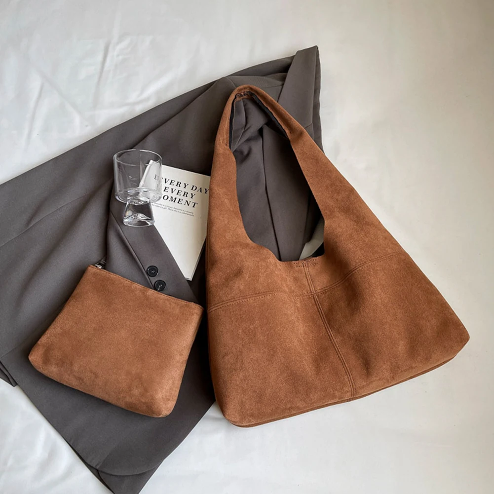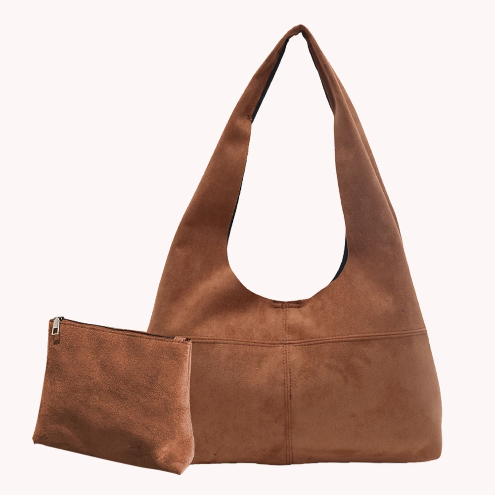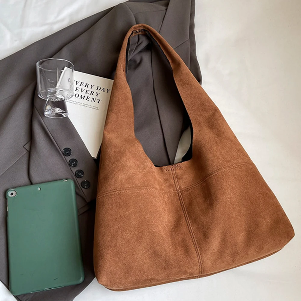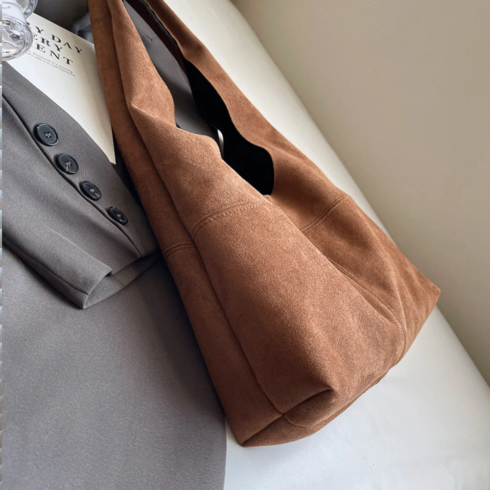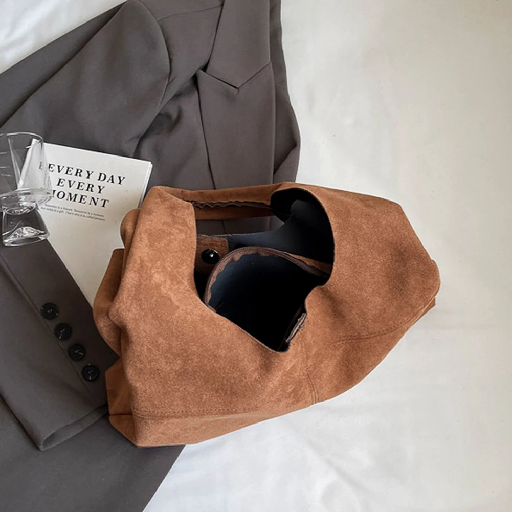 Women Suede Shoulder Bag with Inner Pocket Underarm Bag Vintage Hobo Bag Slouchy for Work Travel