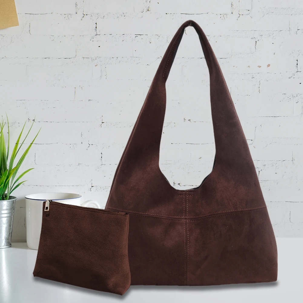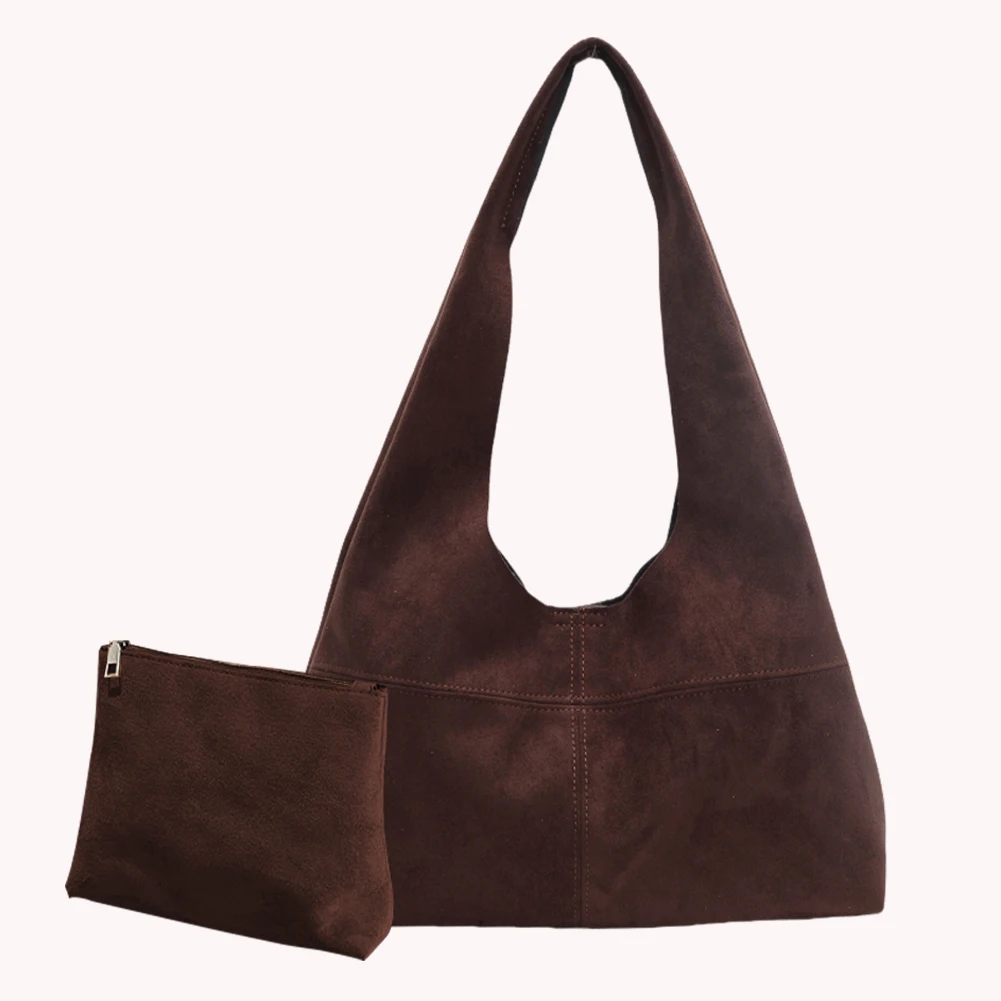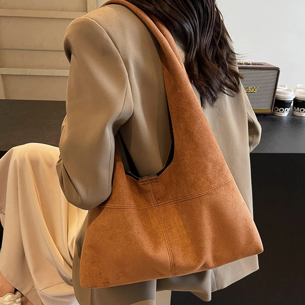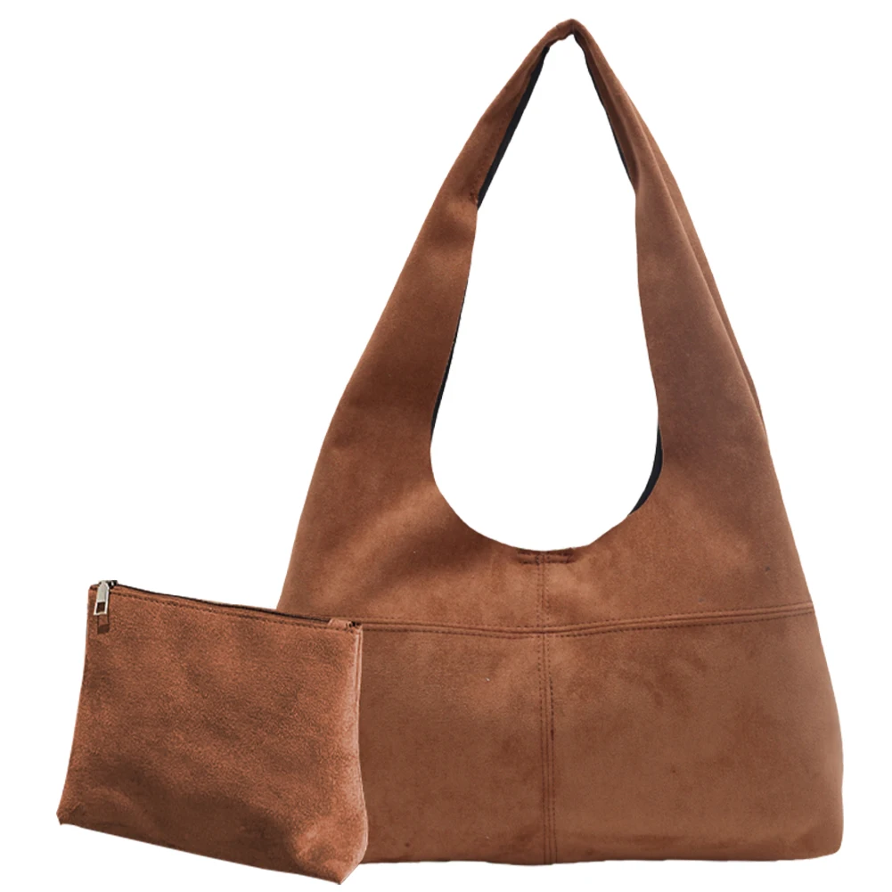 Women Suede Shoulder Bag with Inner Pocket Underarm Bag Vintage Hobo Bag Slouchy for Work Travel