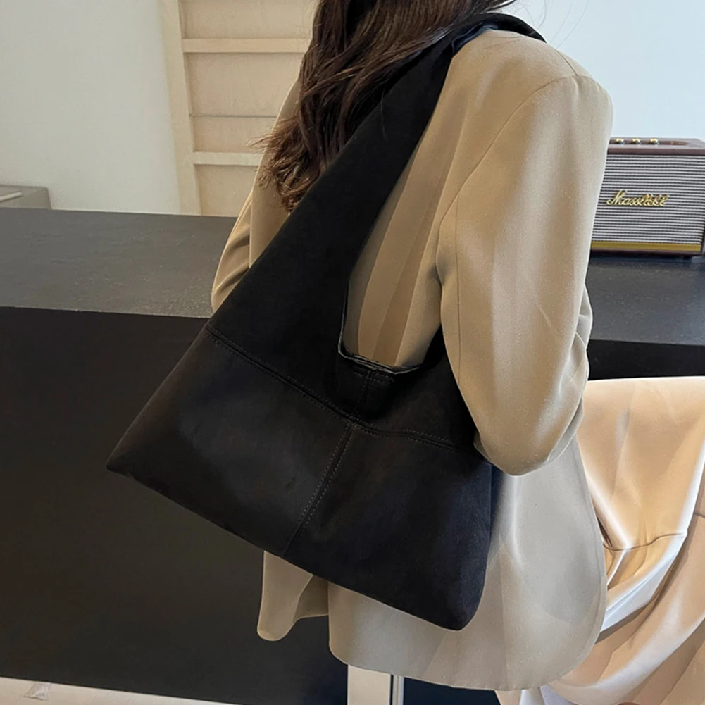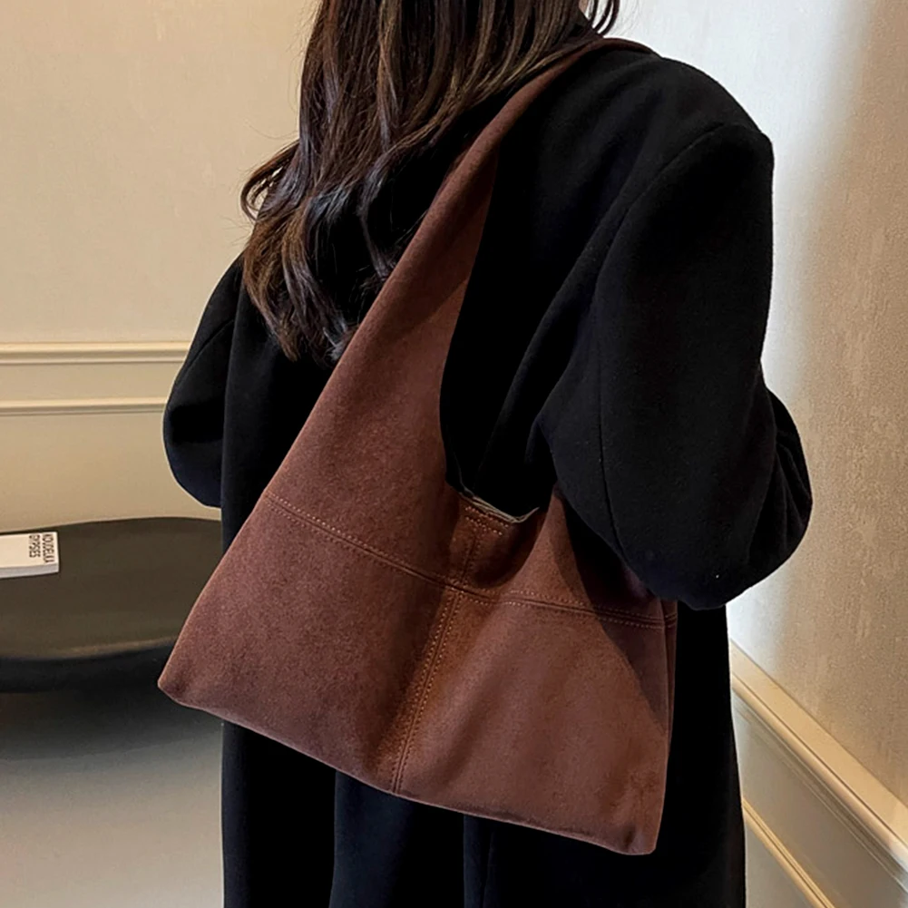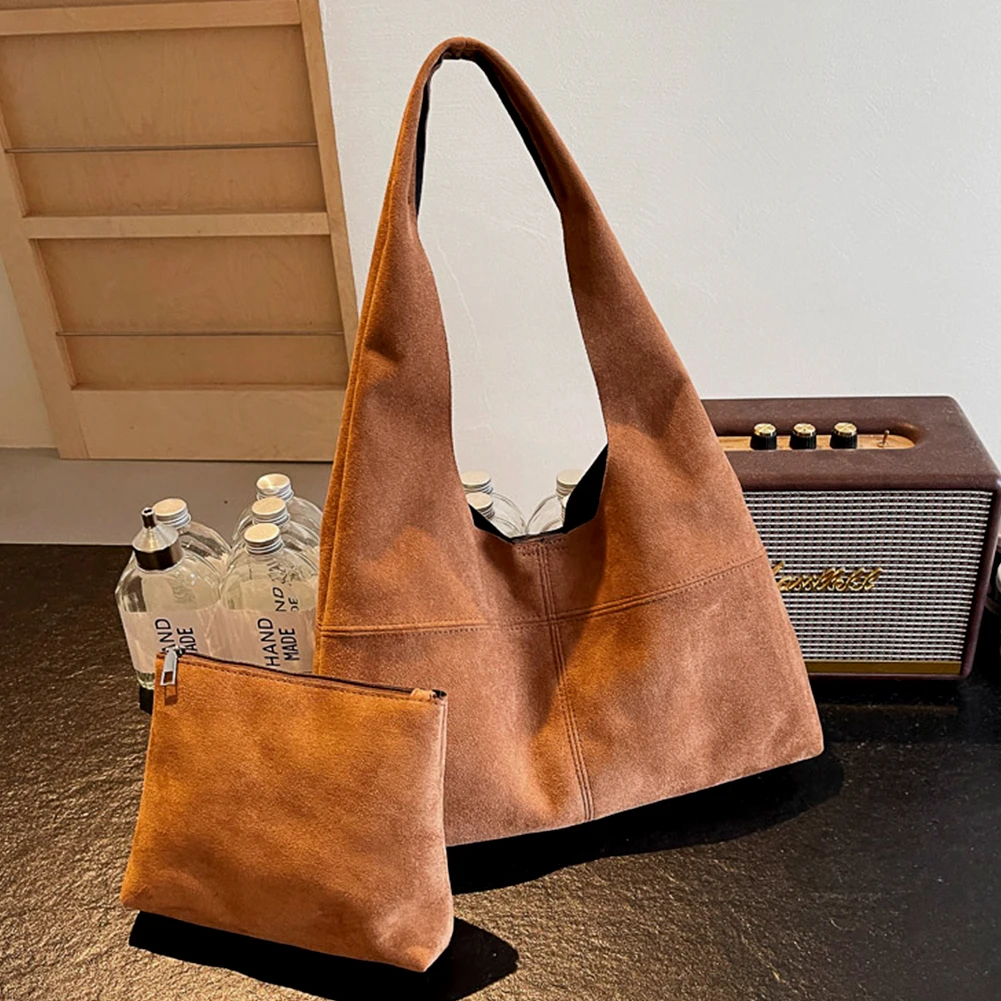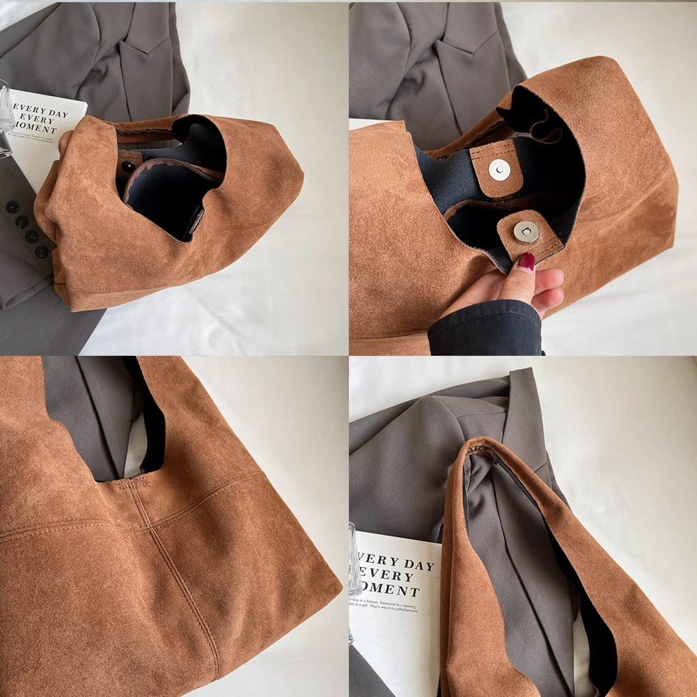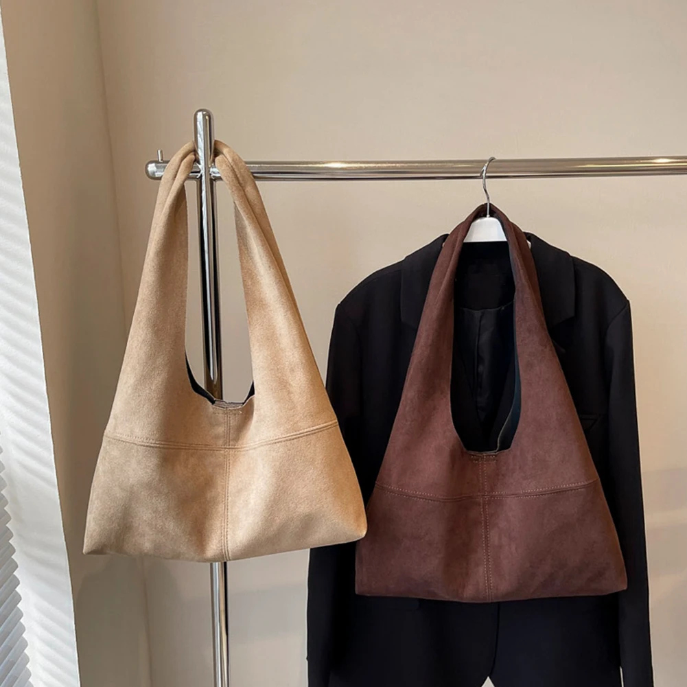 Women Suede Shoulder Bag with Inner Pocket Underarm Bag Vintage Hobo Bag Slouchy for Work Travel