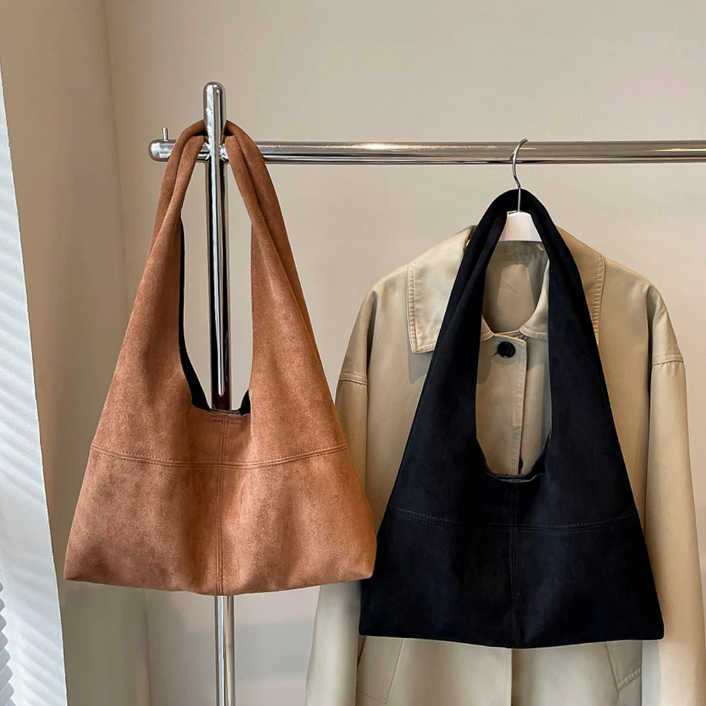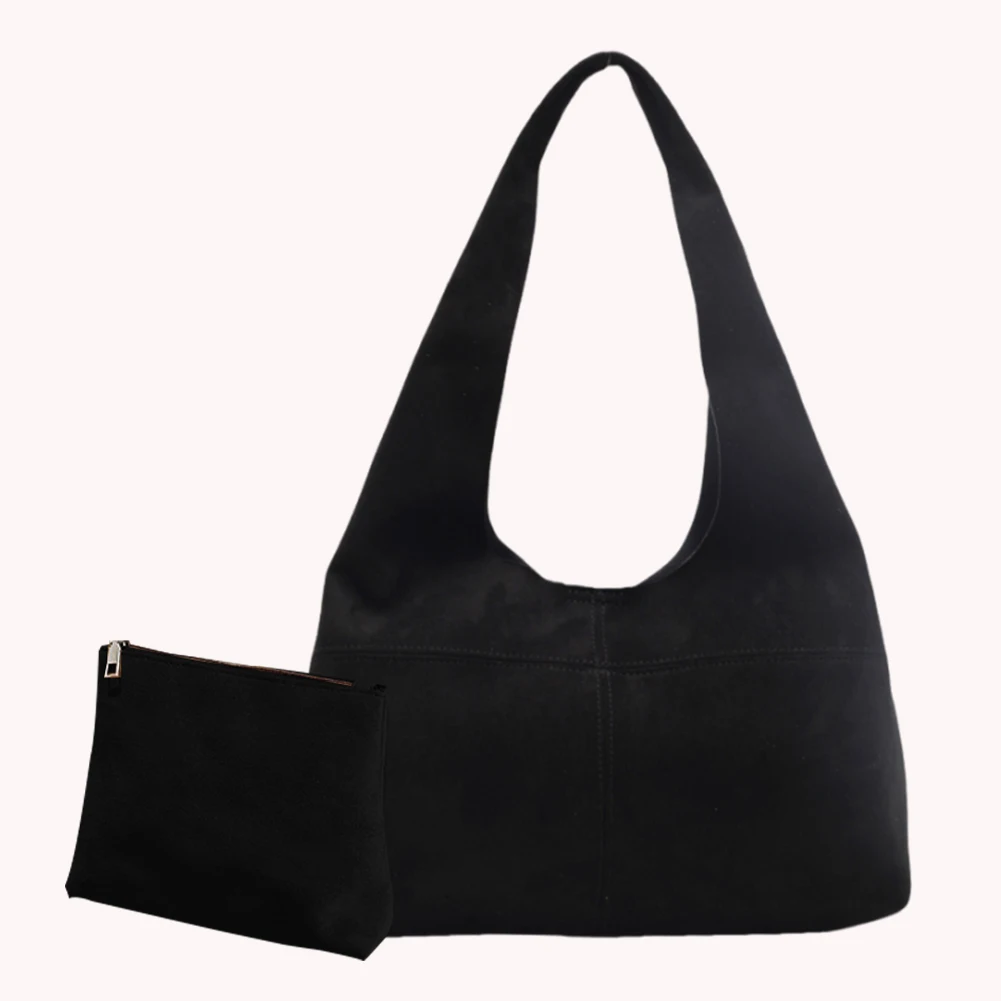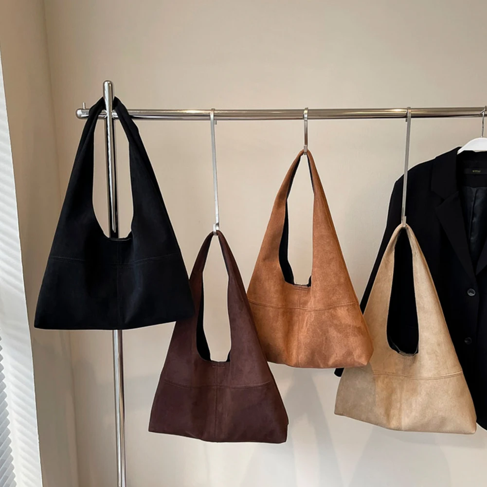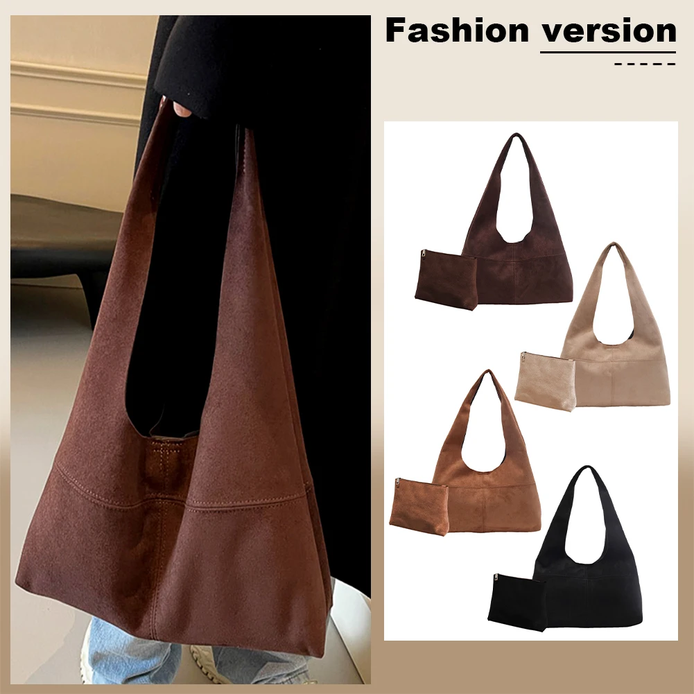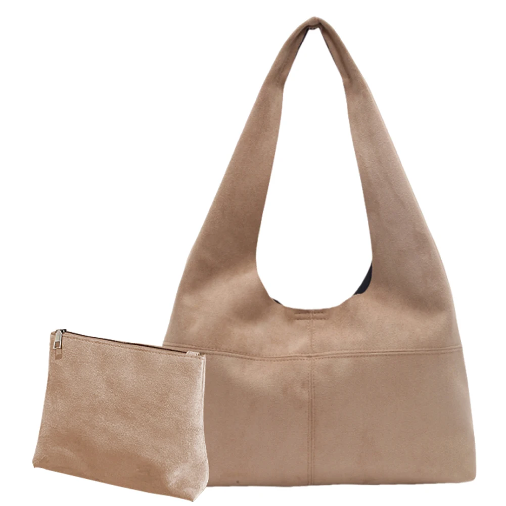Women Suede Shoulder Bag with Inner Pocket Underarm Bag Vintage Hobo Bag Slouchy for Work Travel