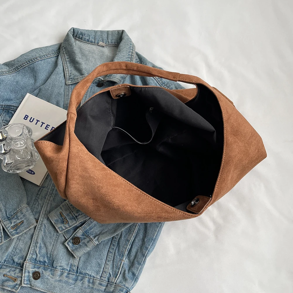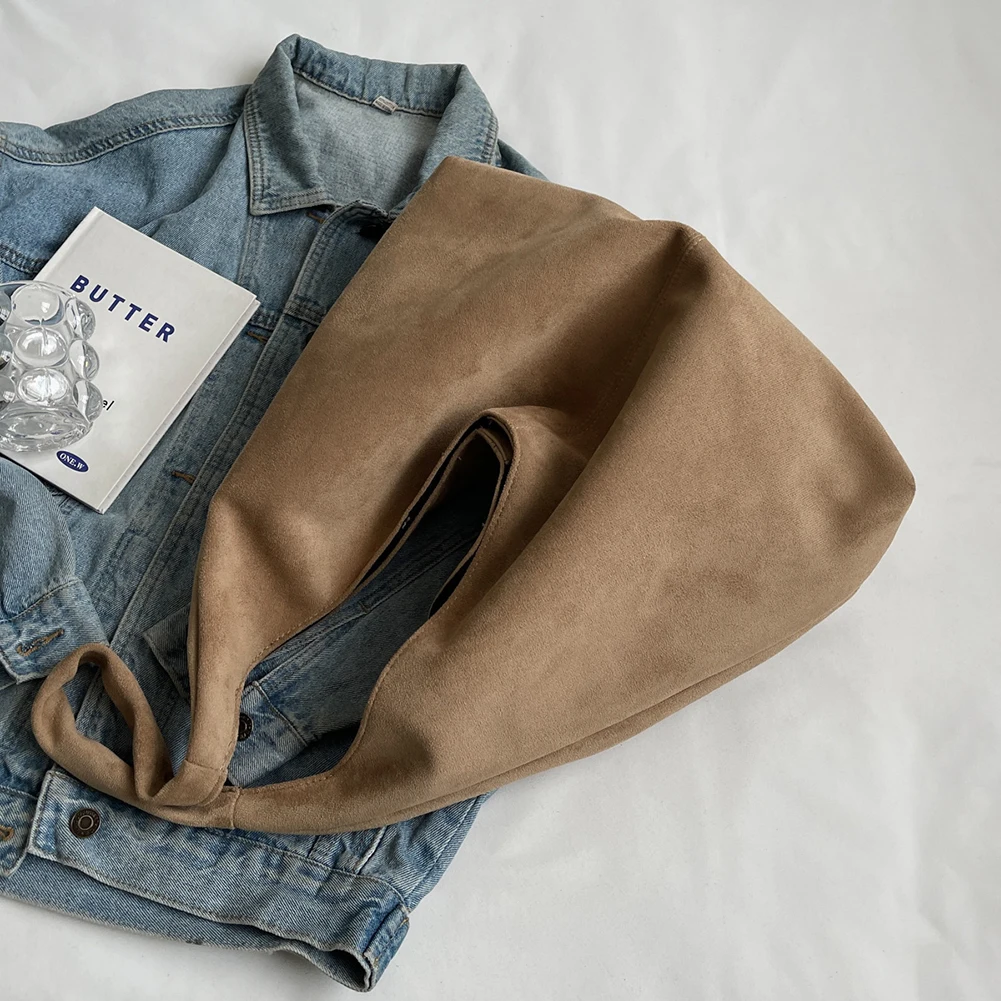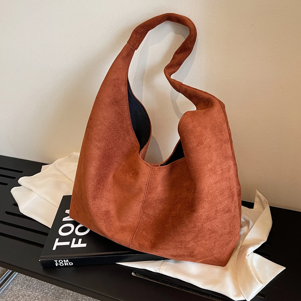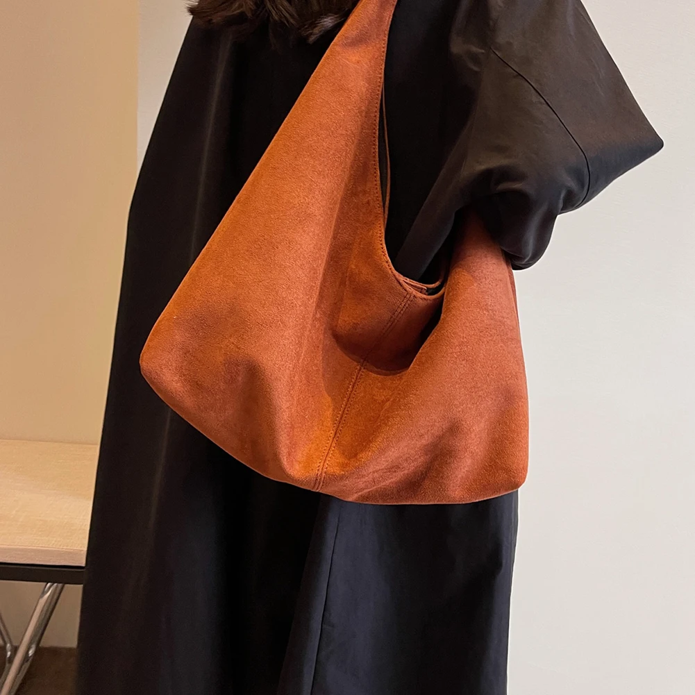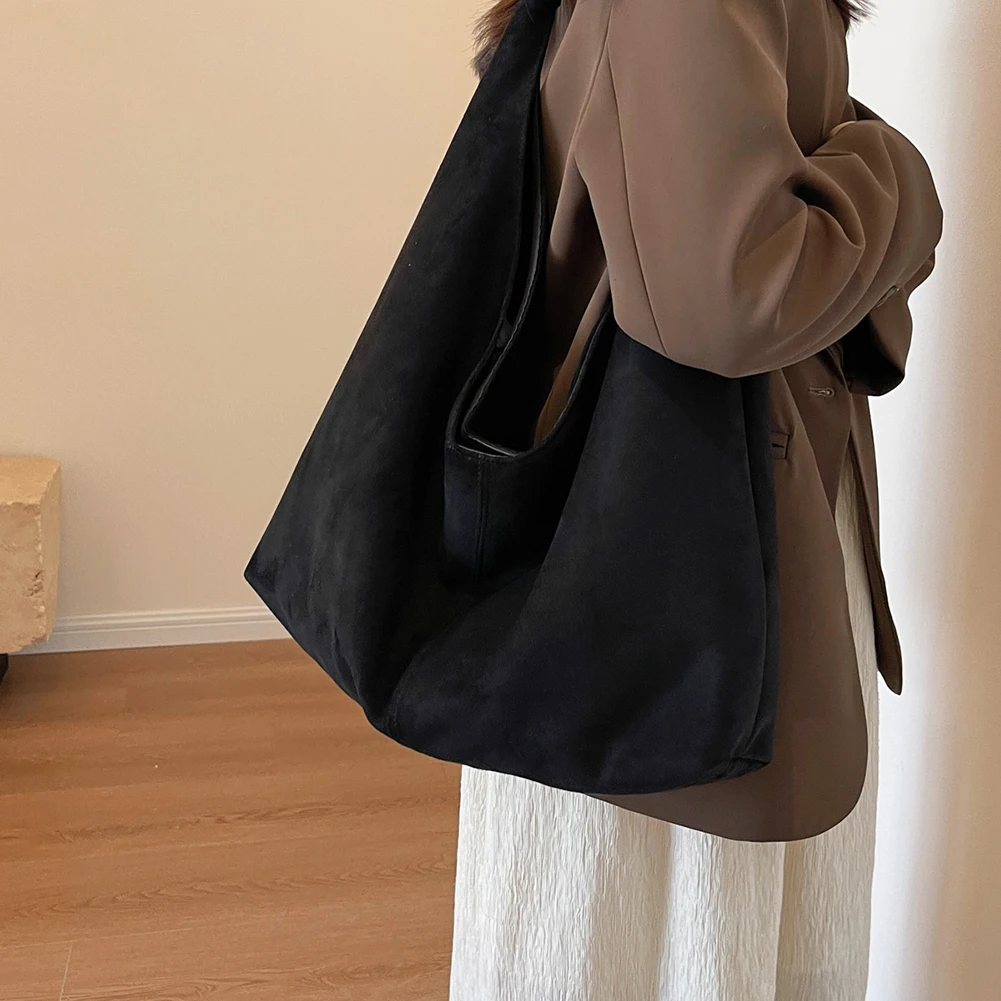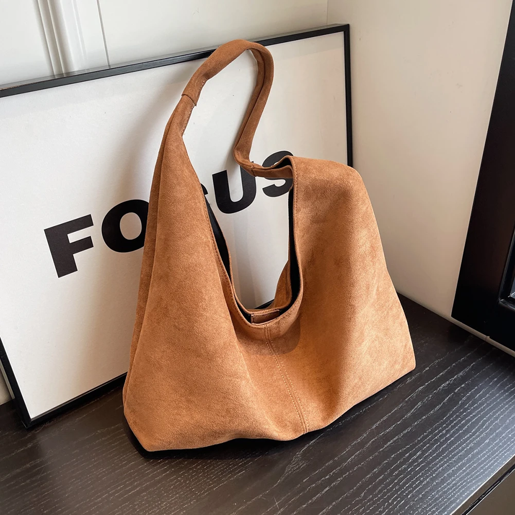Women Suede Shoulder Bag Large Capacity Underarm Bag with Pocket Hobo Bag Trendy Slouchy Bag for Work Travel Shopping