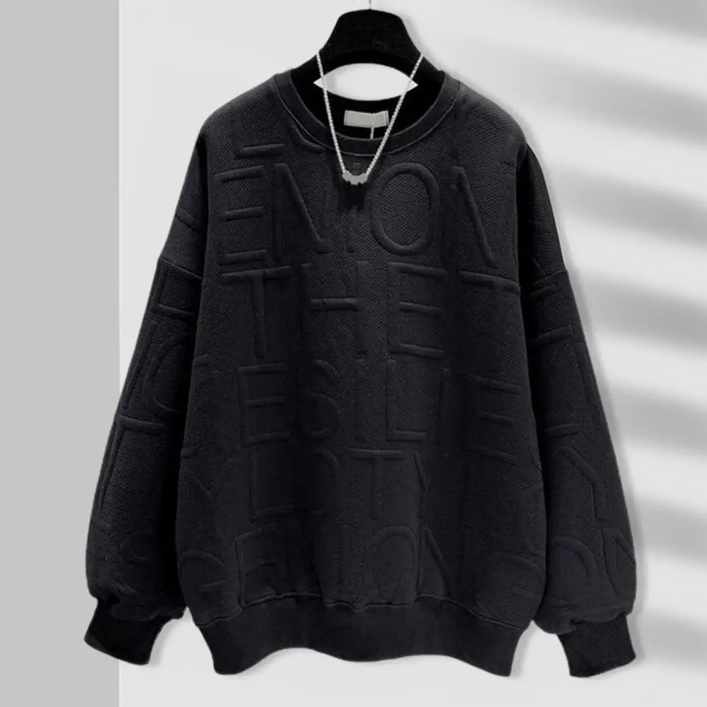 Women Winter Sweatshirt Crew Neck Solid Color Letter Elastic Cuff Loose Cold-proof Pullover Soft Vintage Spring Sweatshirt Female Clothes