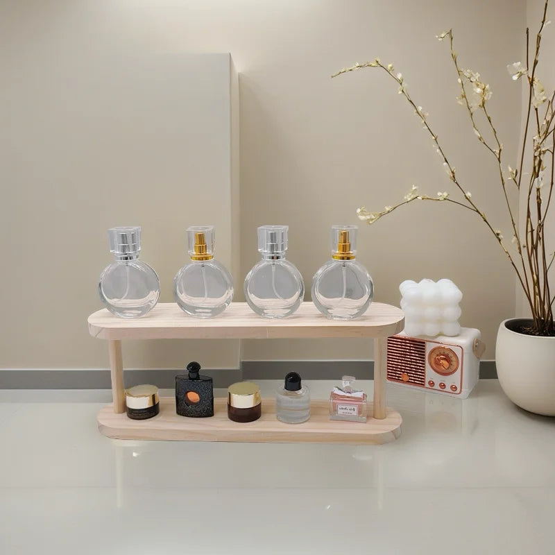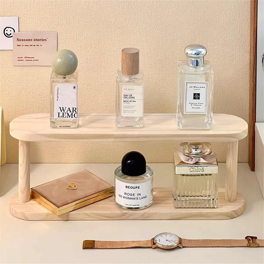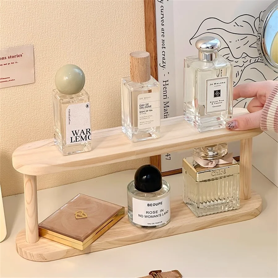 Wooden Storage Shelf 2-Tiers Desktop Organizer Shelves Desk Perfume Display Rack Desktop Dressing Table Cosmetics Storage Rack