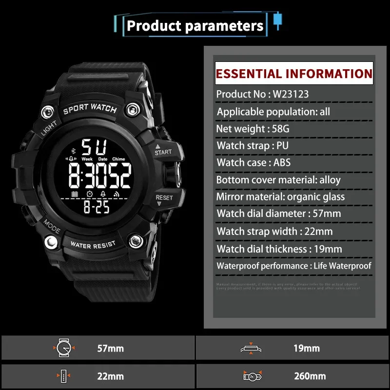 Electronic watch: men's digital watch