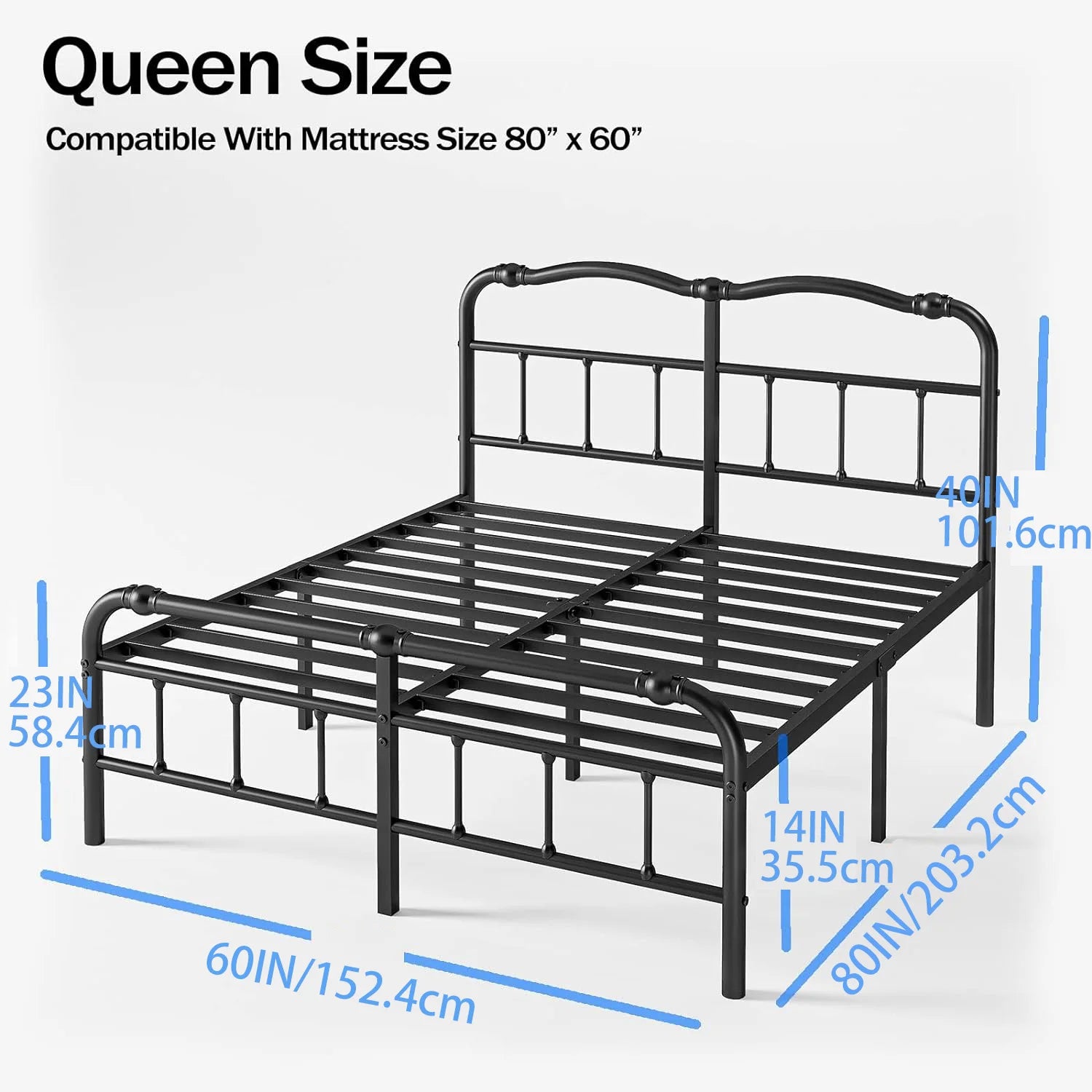 ZIYOO bed frame queen size 14 Inch Metal Queen Bed Frame- Full Size Bedstead King Platform Easy Assembly, Noise Free, Black